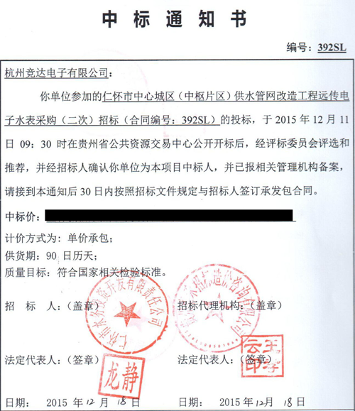 Renhuai District, Guizhou Province adopted a bidding method, and Jingda Company won the bid. The vertical remote transmission and remote control water meter transformation was implemented. Currently, more than 80,000 meters have been used.