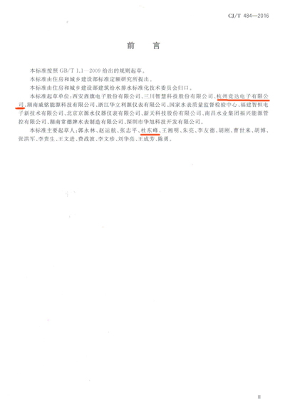 Jingda Company has been engaged in the research and development and production of smart meters for 20 years, and has accumulated rich experience in smart water meter data storage, ladder pricing, etc., and participated in the preparation of this standard.