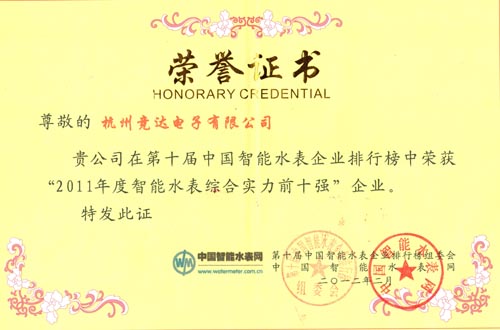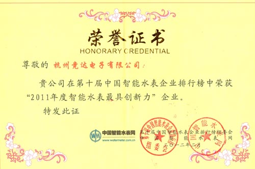 After more than three months of open, fair and democratic selection, the results of the 10th China Smart Water Meter Enterprise Ranking organized by the Smart Water Meter Department of the Science and Technology Development Promotion Center of the Ministry of Construction and the China Smart Water Meter Network were announced. Our company won the honors of "Top Ten Smart Water Meter Comprehensive Strength Enterprises in 2011" and "Most Innovative Smart Water Meter Enterprise in 2011". This is a high recognition of our company's long-term commitment to smart water meter technology innovation and responsibility to users!