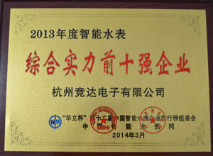 近日,第十二屆”中國(guó)智能水表排行榜“盛大揭榜!杭州競(jìng)達(dá)電子有限公司榮獲”2013年度智能水表技術(shù)領(lǐng)先企業(yè)“及”2013年度智能水表綜合實(shí)力前十強(qiáng)企業(yè)“稱號(hào)!這是自2005年以來(lái),競(jìng)達(dá)公司連續(xù)9年榮獲綜合實(shí)力前十強(qiáng)企業(yè)稱號(hào),彰顯了競(jìng)達(dá)公司在智能水表行業(yè)的卓越地位及雄厚實(shí)力!