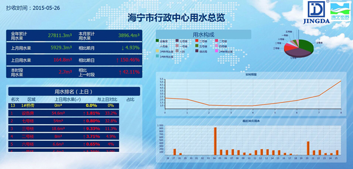 2015年,海寧市行政中心建成首個(gè)公共機(jī)構(gòu)水資源動(dòng)態(tài)平衡監(jiān)測(cè)系統(tǒng),為海寧市“五水共治”建設(shè)打響了漂亮的攻堅(jiān)戰(zhàn)!不僅大幅提升了水資源使用的管理水平,降低了產(chǎn)銷差,而且真正實(shí)現(xiàn)了技術(shù)節(jié)水和高效控水!該項(xiàng)目是由海寧市水務(wù)集團(tuán)和杭州競(jìng)達(dá)公司共同承建,通過管網(wǎng)改造及技術(shù)手段,實(shí)現(xiàn)了用水的實(shí)時(shí)遠(yuǎn)程集抄管理,以及多級(jí)水表的水平衡實(shí)時(shí)監(jiān)測(cè)、漏水異常實(shí)時(shí)預(yù)警,大幅提升了水資源使用的管理水平!