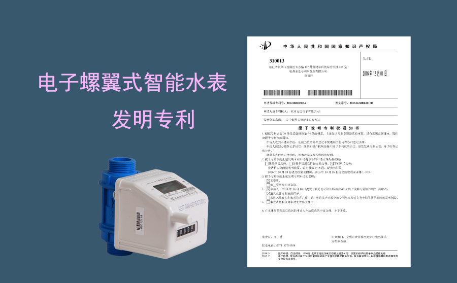 近日,競達(dá)公司收到國家知識產(chǎn)權(quán)局發(fā)來的通知,授予“電子螺翼式智能小口徑水表的發(fā)明專利權(quán)”,專利號為:201410346987.2。
